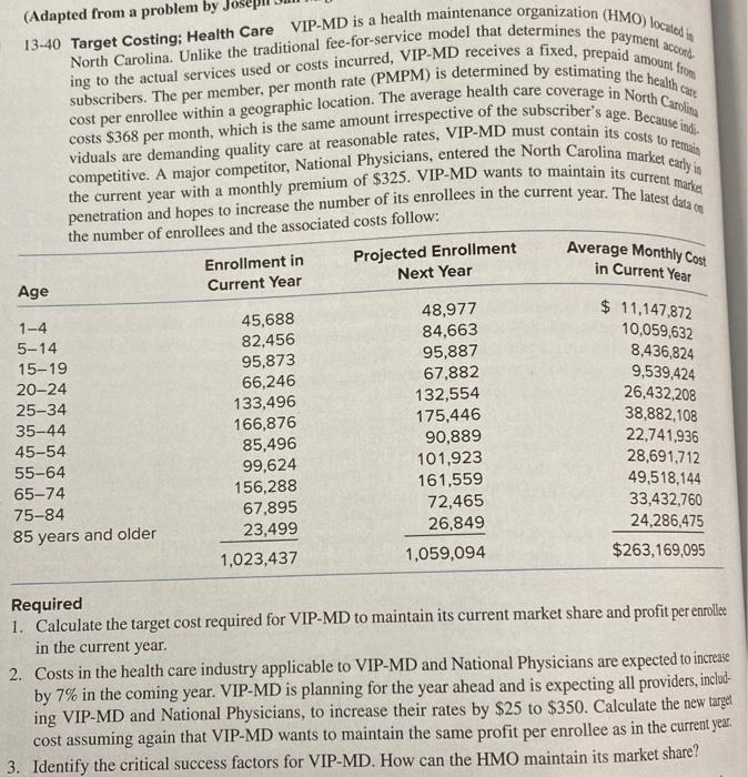 Solved Adapted From A Problem By 13 40 Target Costing Chegg Com